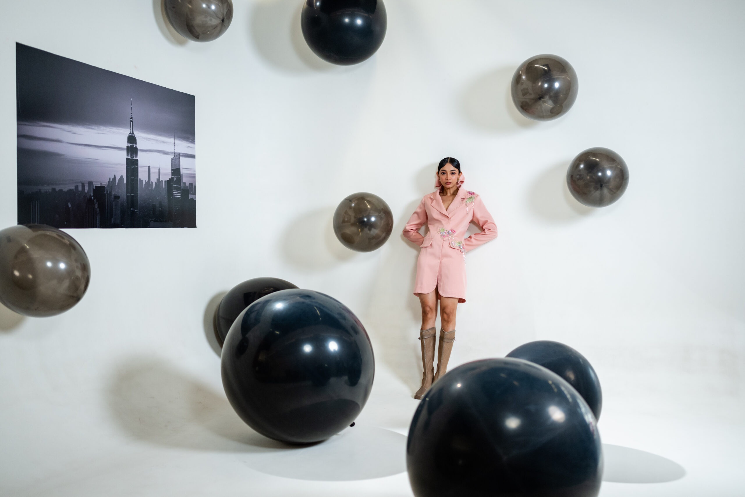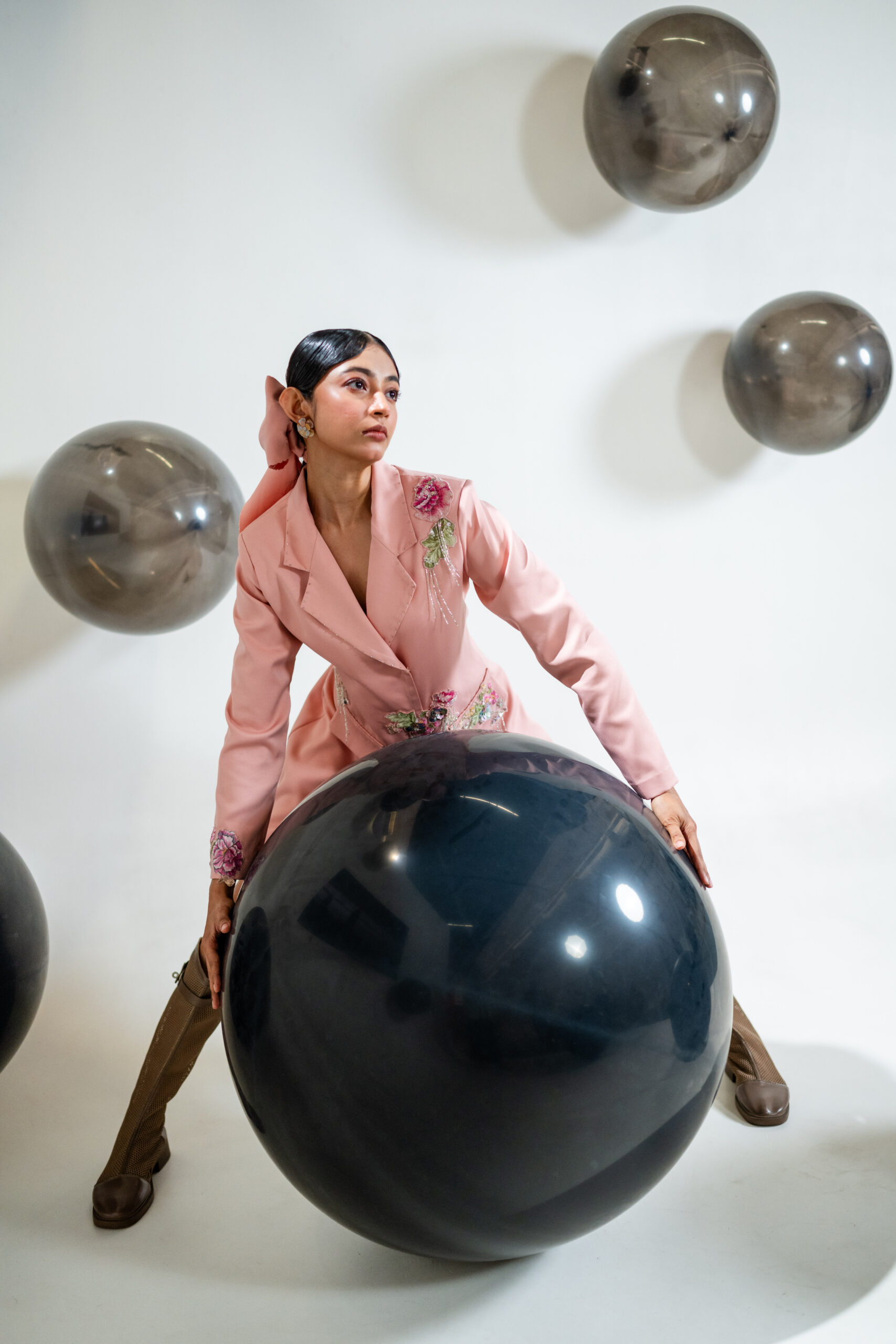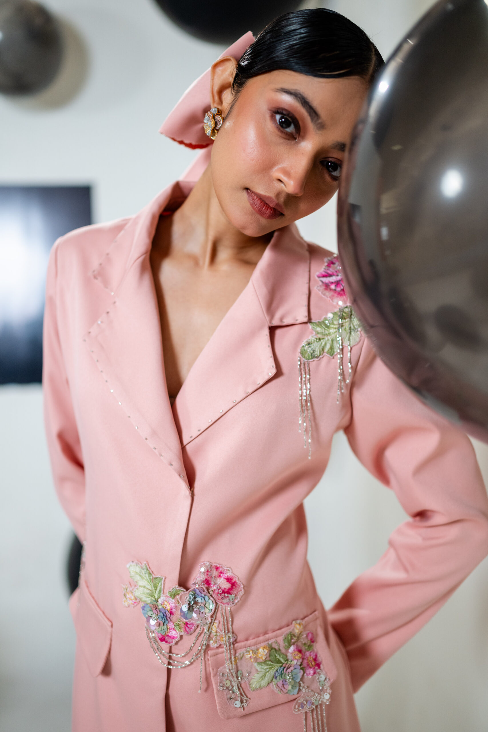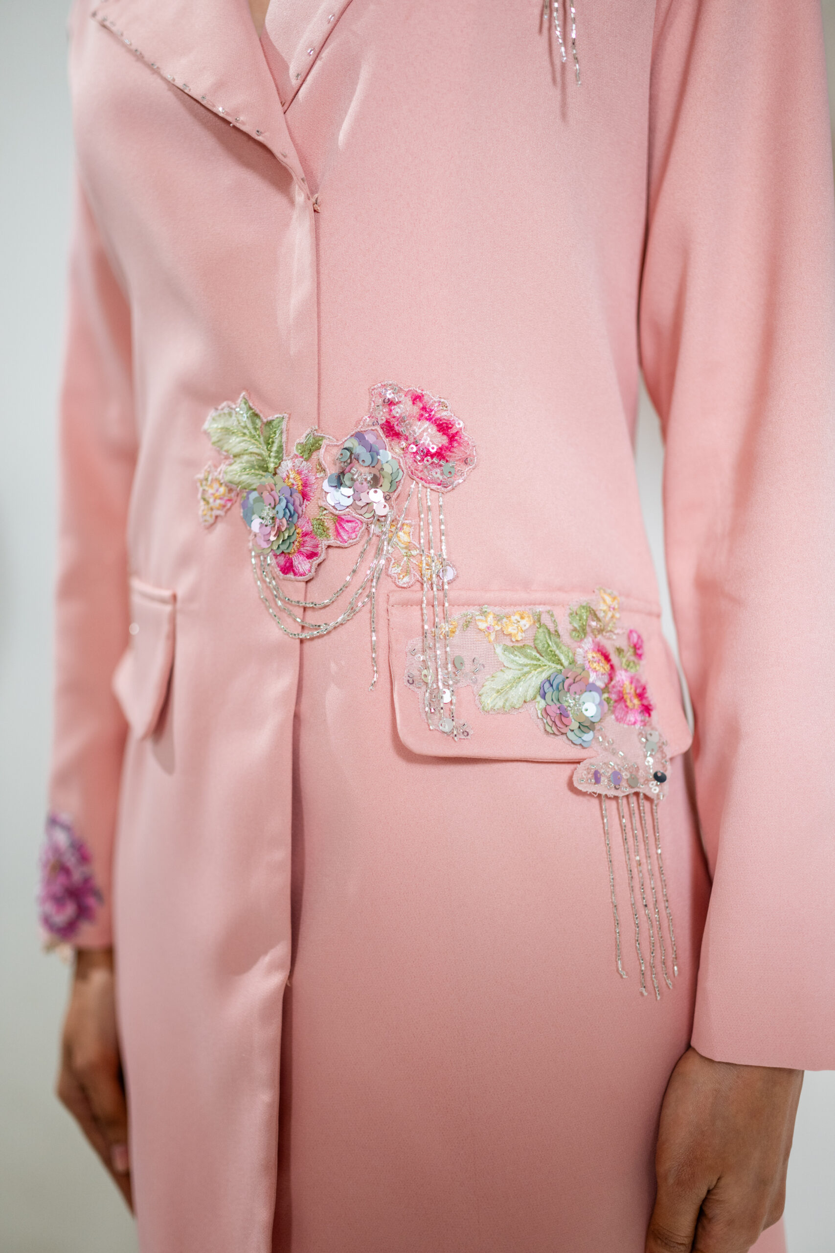 IMPORTED SATIN DRESS WITH FLOWER DETAILING