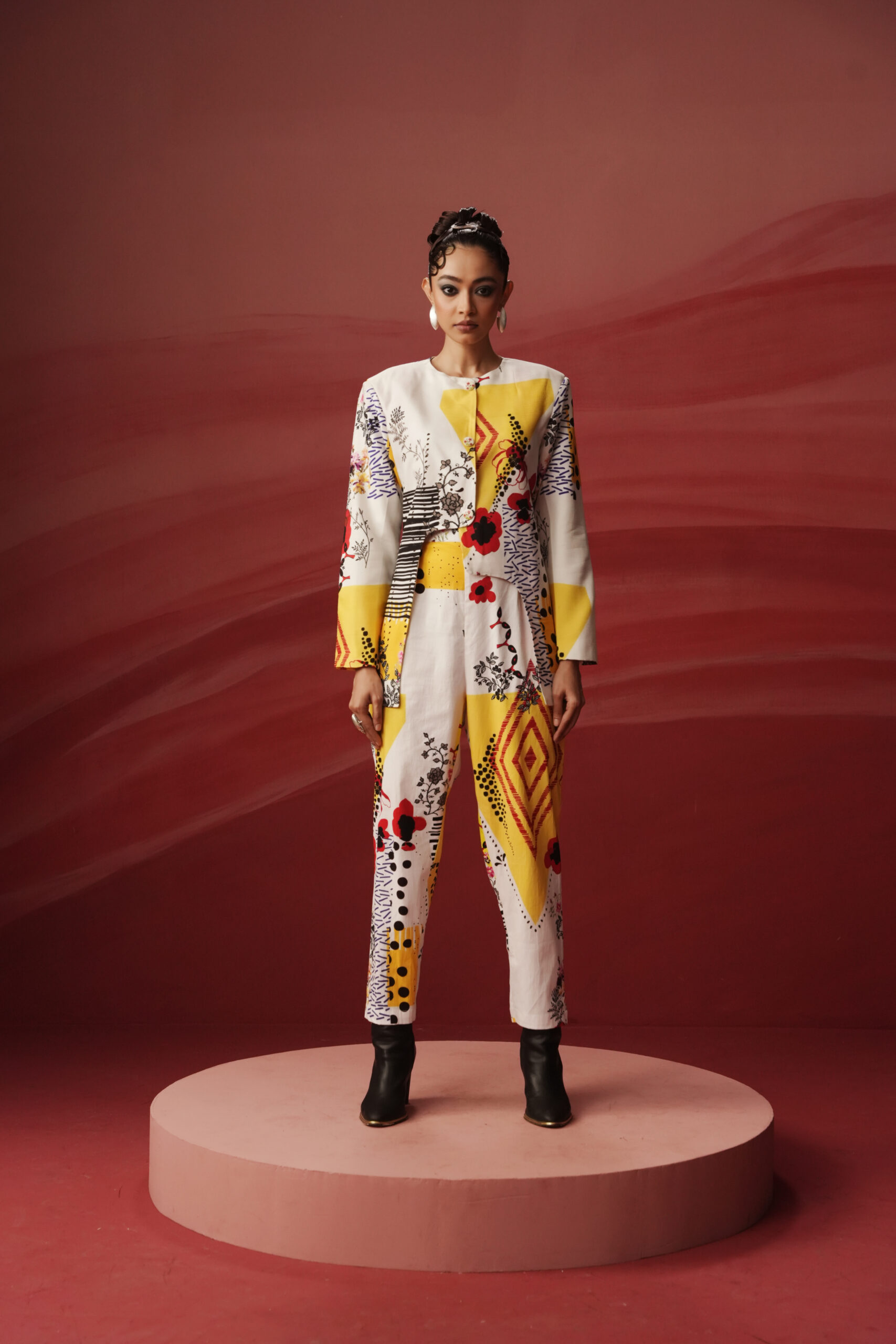 PRINTED PANTS WITH EMBELLISHED PRINTED BLEZAR