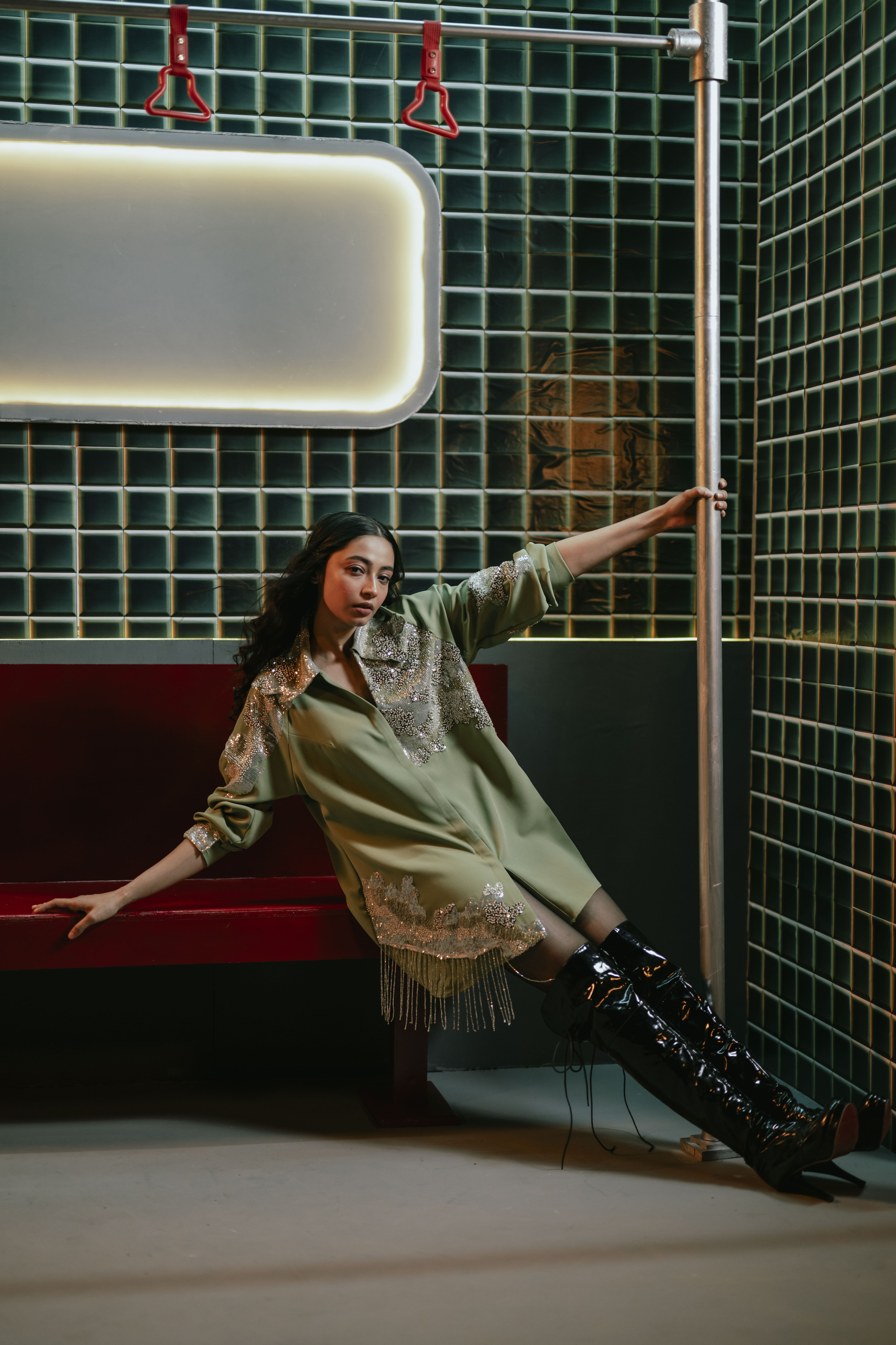 This ensemble pairs a detailed cotton top with a fitted cotton lycra skirt to create a balanced and modern silhouette. The cotton top introduces texture through subtle detailing while maintaining comfort.