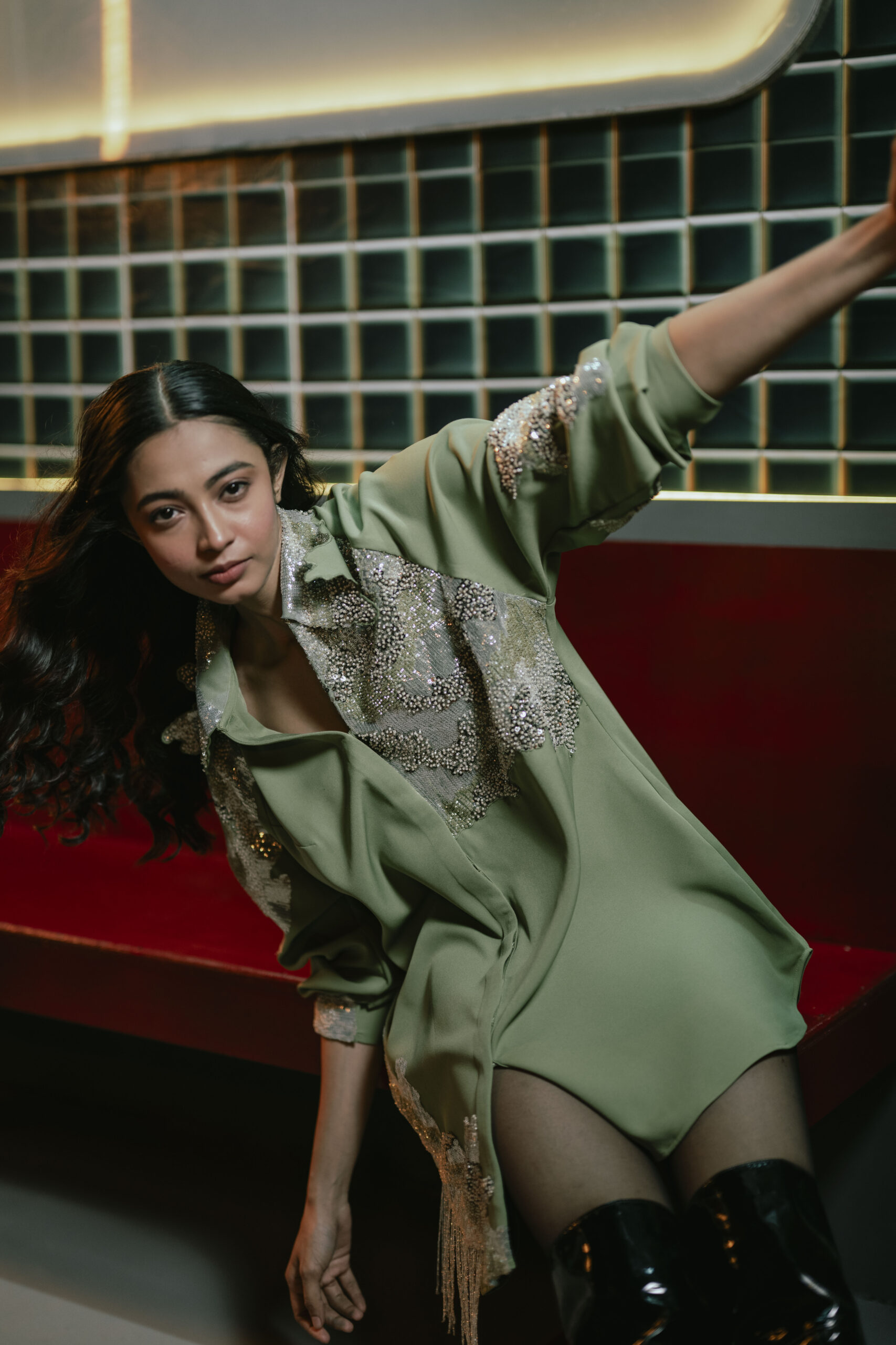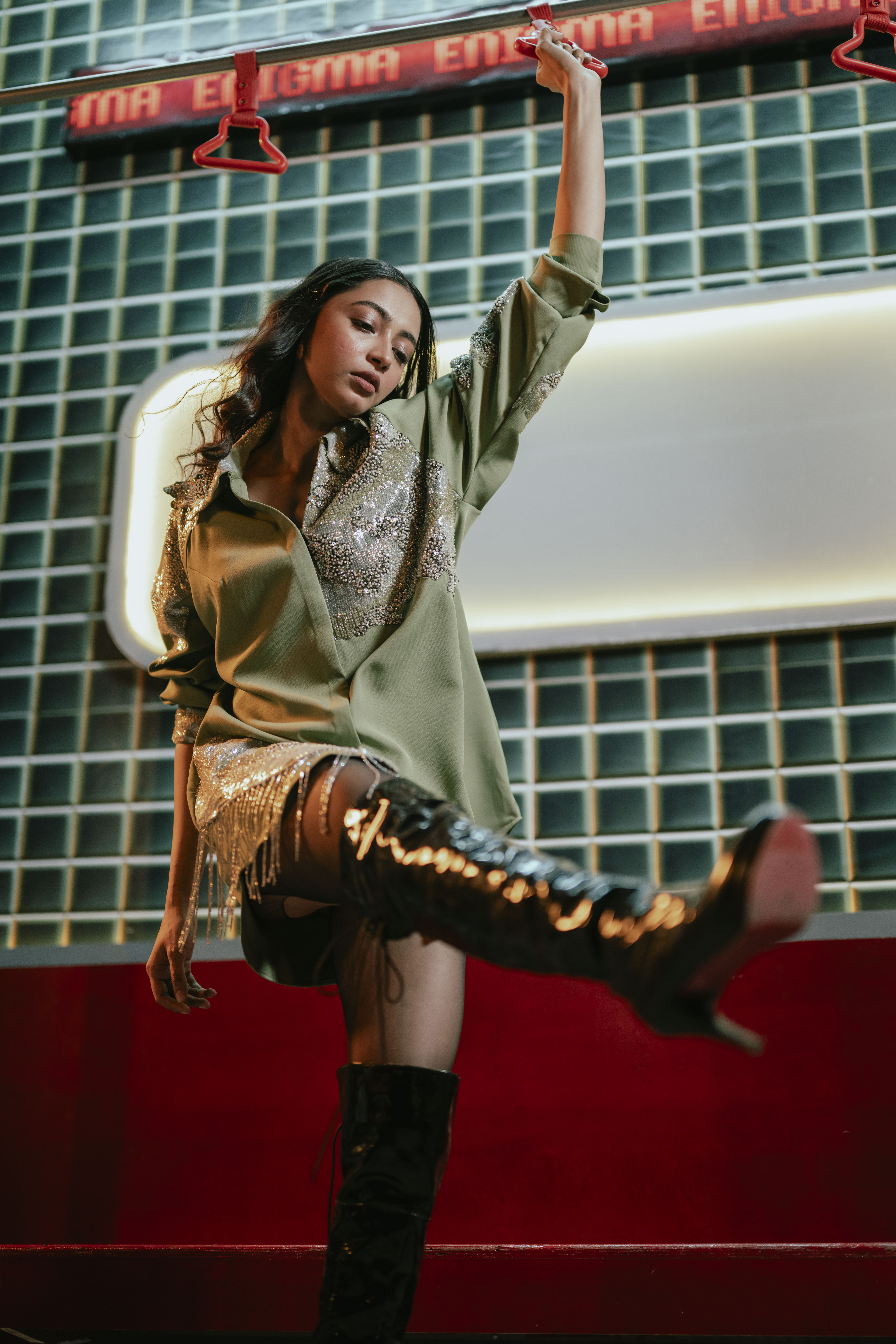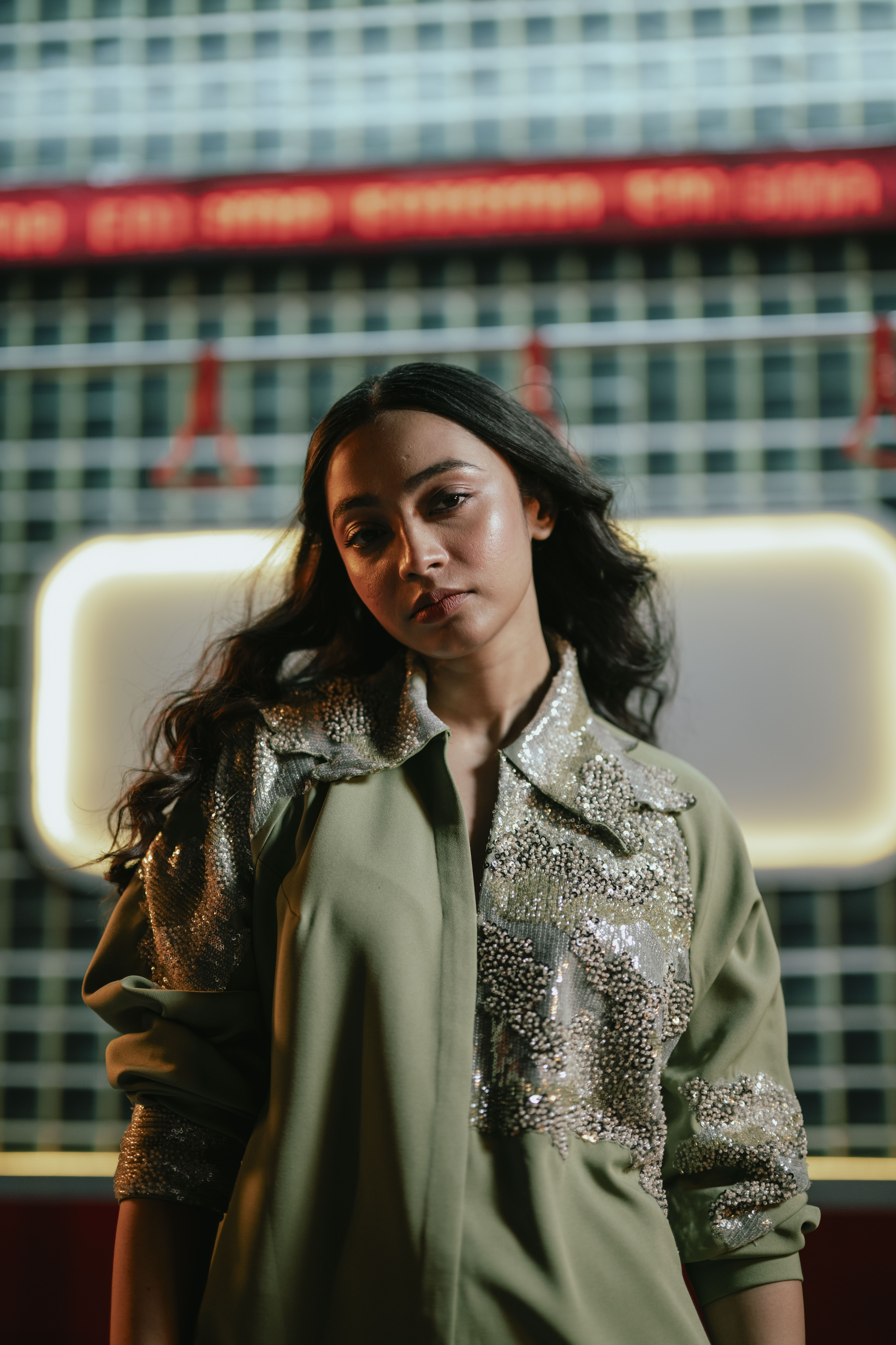 The outfit works beautifully for occasions that require polished yet comfortable styling.